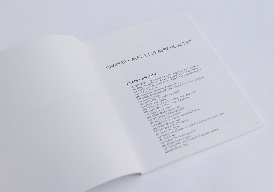 The text was generated by refining a subset of the Generative Pretrained Transformer 2 (GPT2) open-source artificial intelligence software. It was refined using one-thousand actual interviews with artists comprising 54,665,994 ‘tokens’ within its dataset.